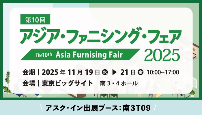 11月19日(水)~11月21日(金)10時~17時 東京ビッグサイト アジア・ファニシング・フェアに出展します。